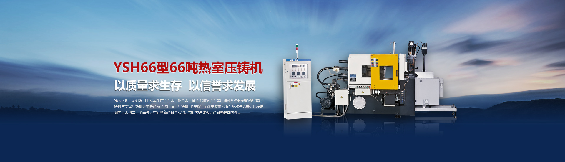我司現(xiàn)主要研發(fā)用于批量加工生產(chǎn)鋁合金、銅合金、鋅合金和鉛合金等壓鑄件的各種型號規(guī)格的熱室/冷室壓鑄機(jī),主導(dǎo)產(chǎn)品“銀山牌”壓鑄機(jī)自1995年榮獲寧波市名牌產(chǎn)品稱號以來,已發(fā)展到兩大系列二十個品種,有五項產(chǎn)品曾榮獲省、市科技進(jìn)步獎,產(chǎn)品暢銷國內(nèi)外。歷年來向用戶提供了8000余臺設(shè)備,為中國的壓鑄工業(yè)發(fā)展作出了重要的貢獻(xiàn),企業(yè)獲得了很高的信譽度。
